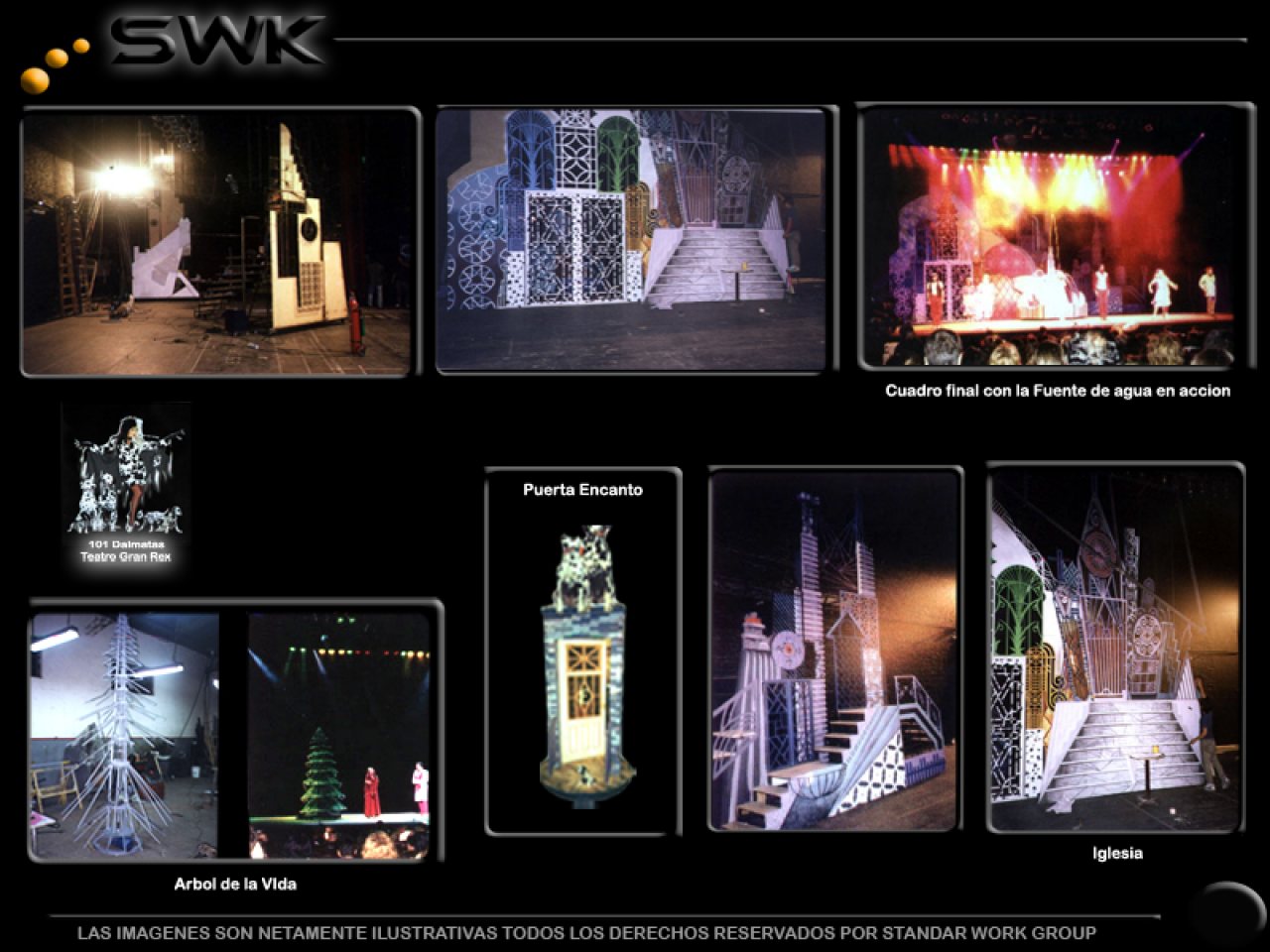 Esnografia completa para 101 Dalmatas en el teatro Gran Rex bajo el Diseño escenografico de Alberto Negrin.