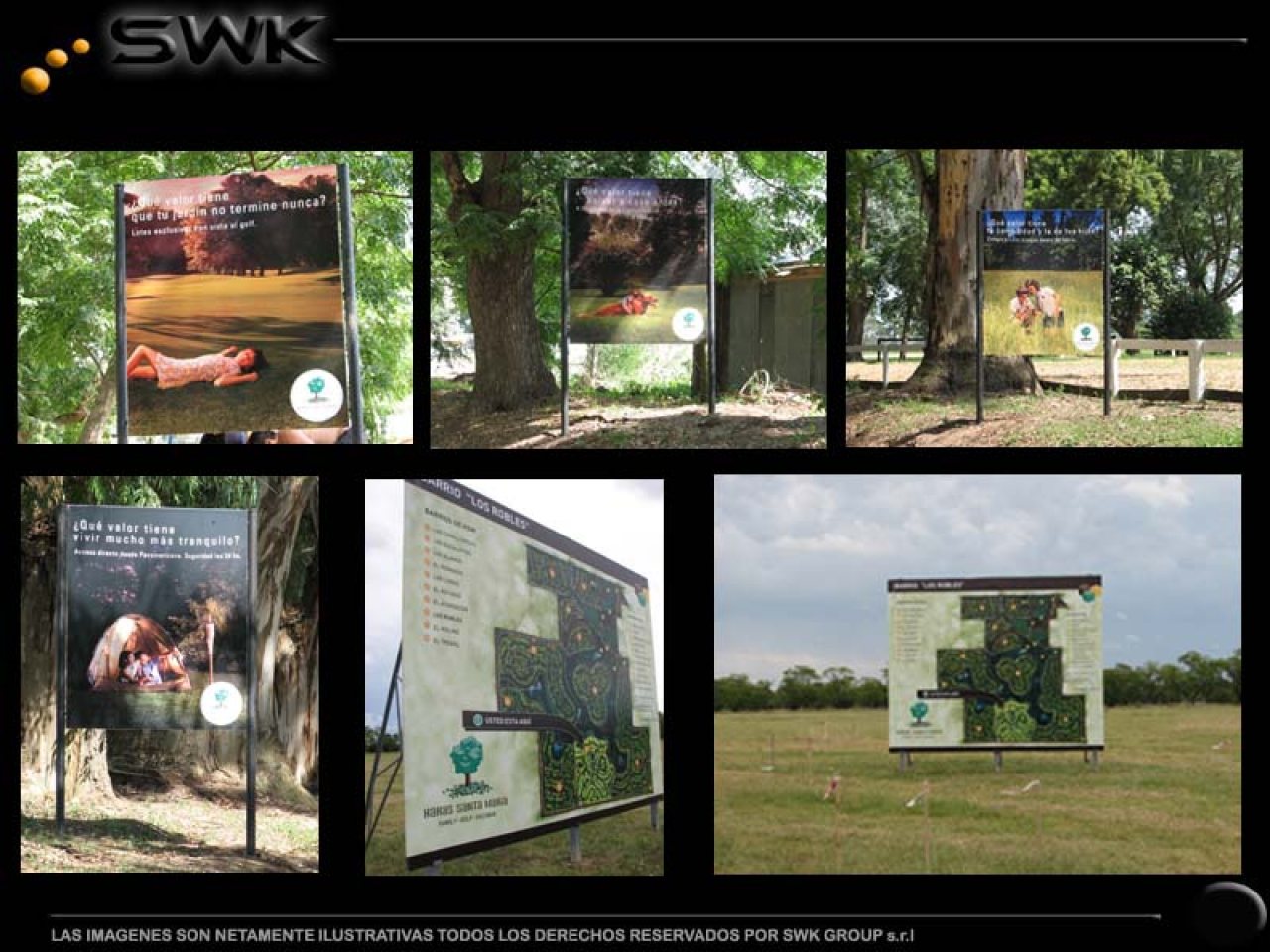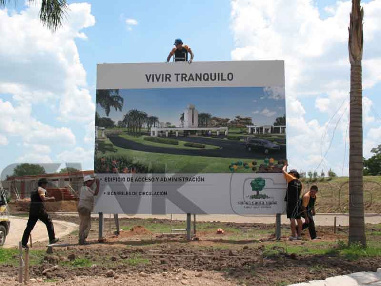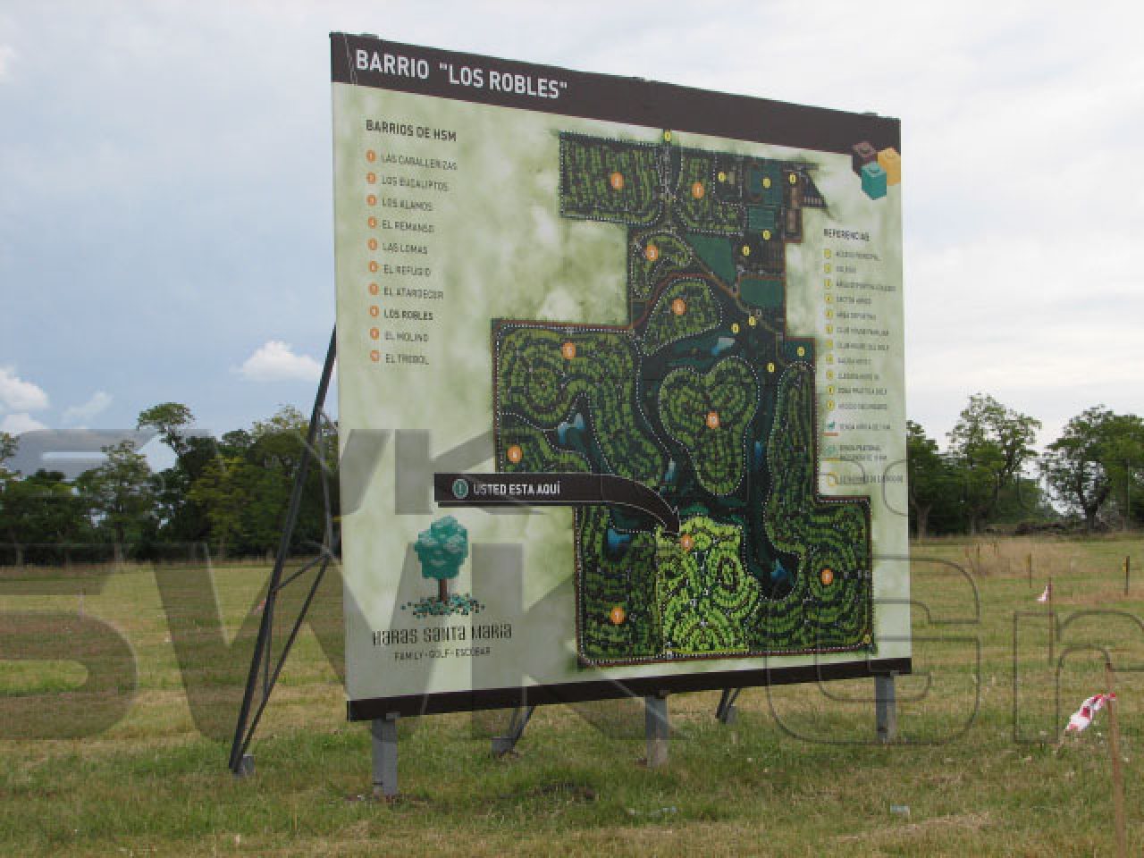 Carteles fabricados para Haras Santa Maria, comunicando los barrios internos del Country como tambien el institucional sobre la ruta 9