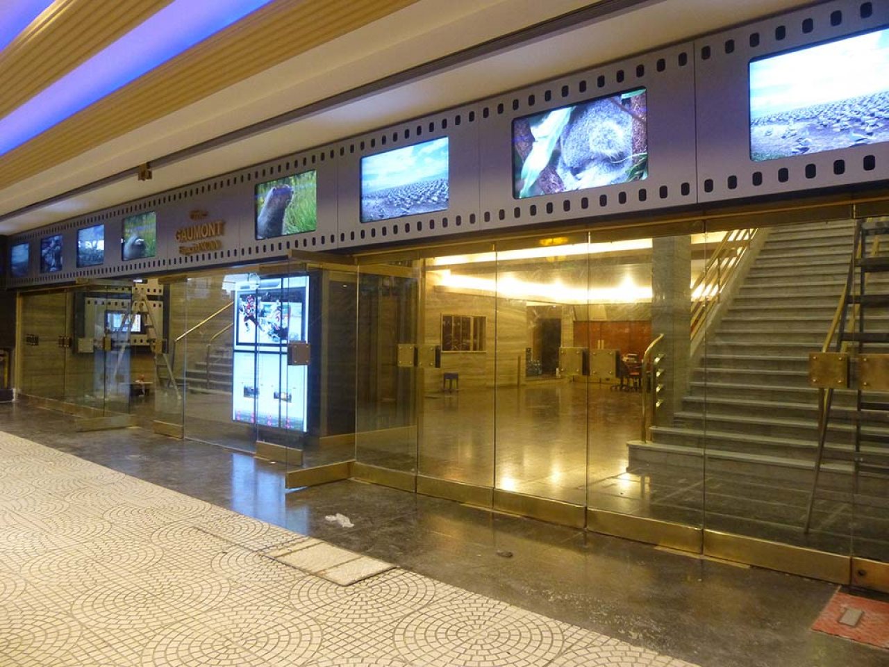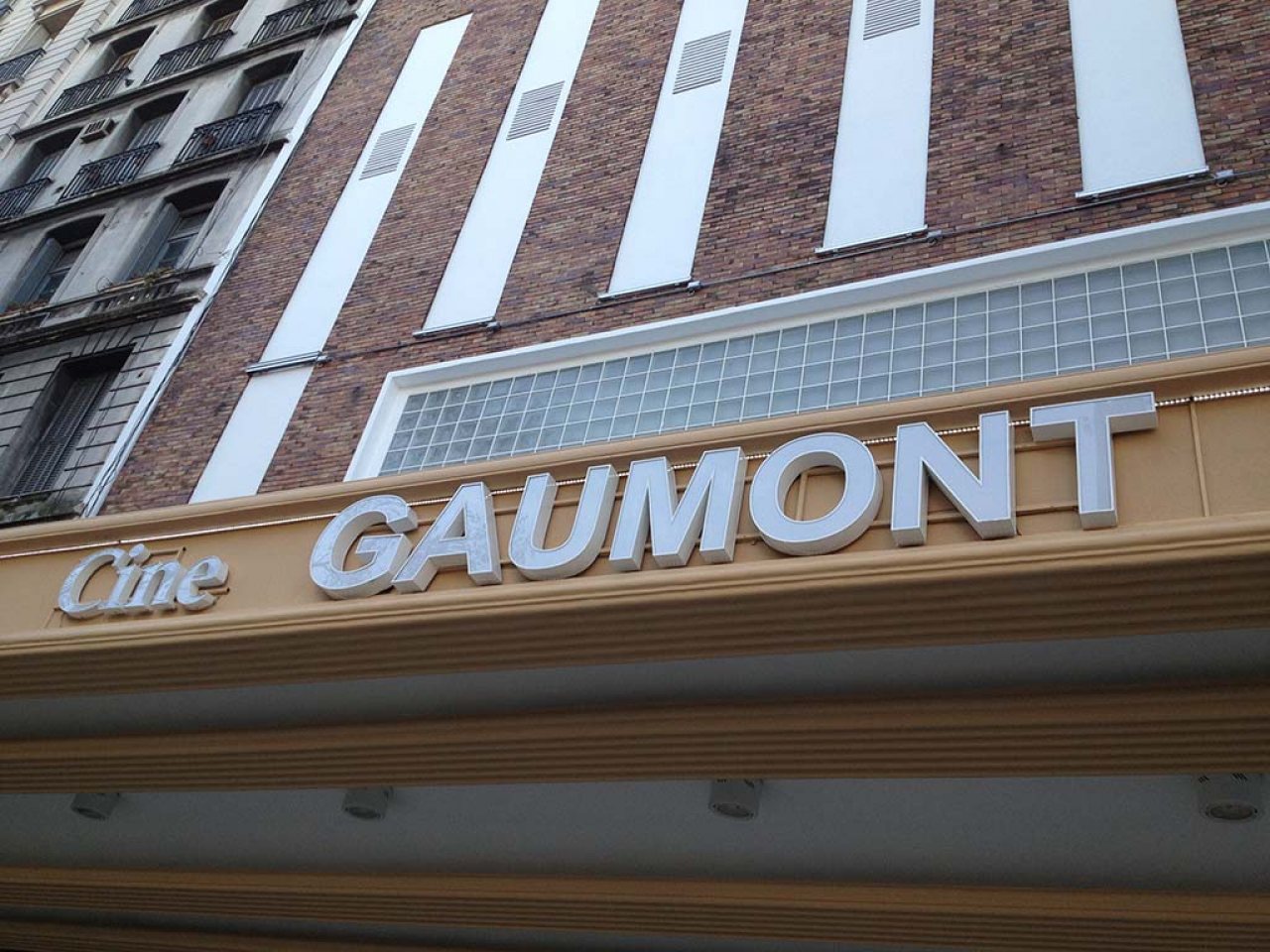 Remodelacion del historico y legendario Cine GAUMONT ubicado en la plaza de los dos congresos en la Ciudad Autonoma de Buenos Aires. Se realizo; Marquesina interactiva con pantallas de LCD para comunicacion de peliculas, pantallas en su interior para comunicacion de las distintas salas, letras corporeas Back Light en la fachada del cine e iluminacion LED en letras superiores y frente. Trabajo realizado a pedido del espacio INCAA a traves de Presidencia de la nacion.