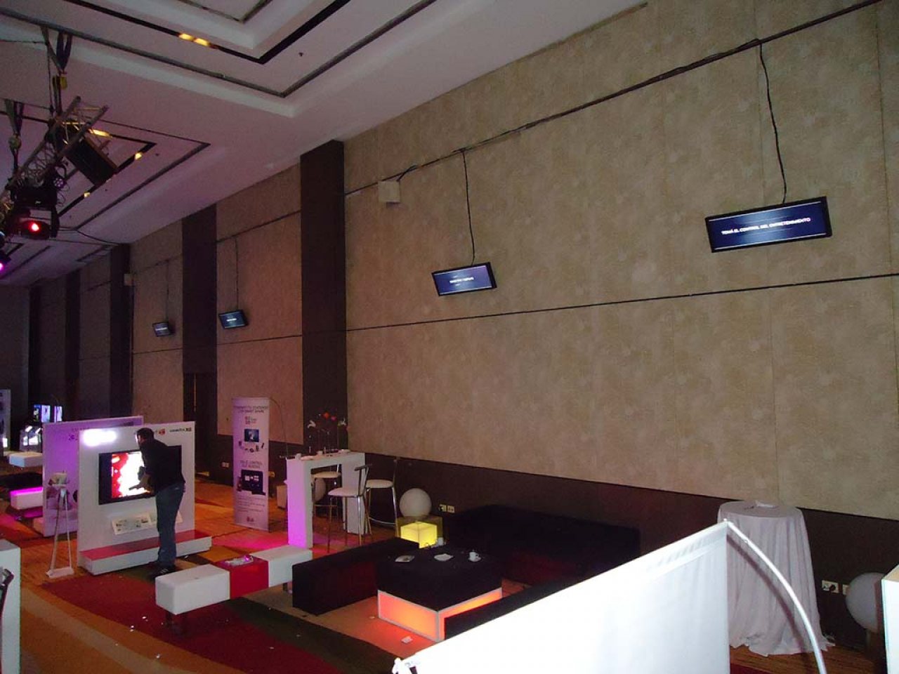 Fabricacion de Estructuras y armado de Video Wall de 3x3 con pantallas profesionales LG de 47" realizado en la Expo de comunicacion en el hotel HILTON Puerto Madero