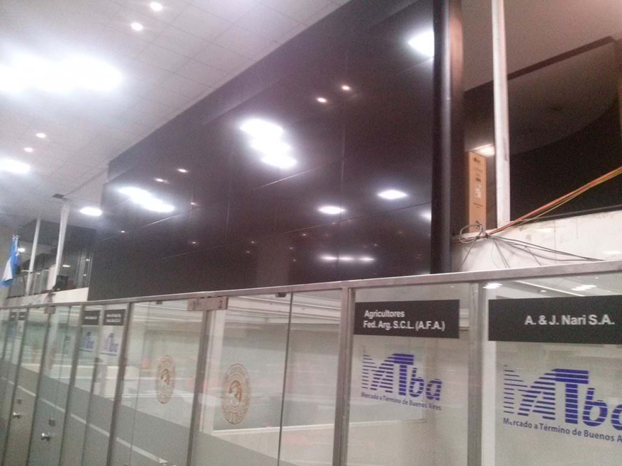 Video Wall 8x4 fabricado para la Bolsa de Cereales de Buenos Aires. Estructura, montaje y 32 pantallas linea profecional LG de 55" forman una espectacular pantalla de comunicacion visual.