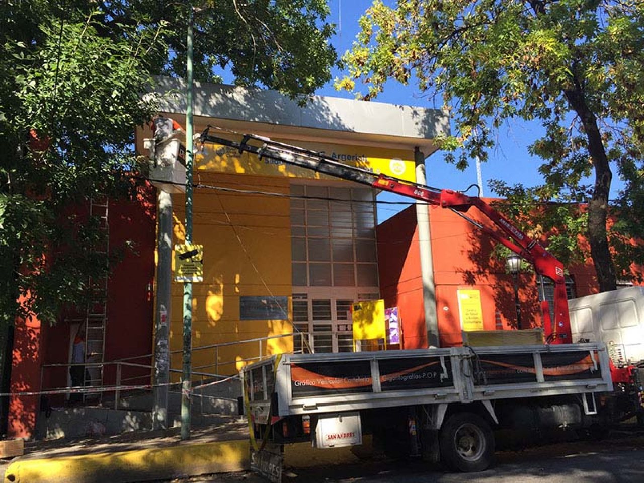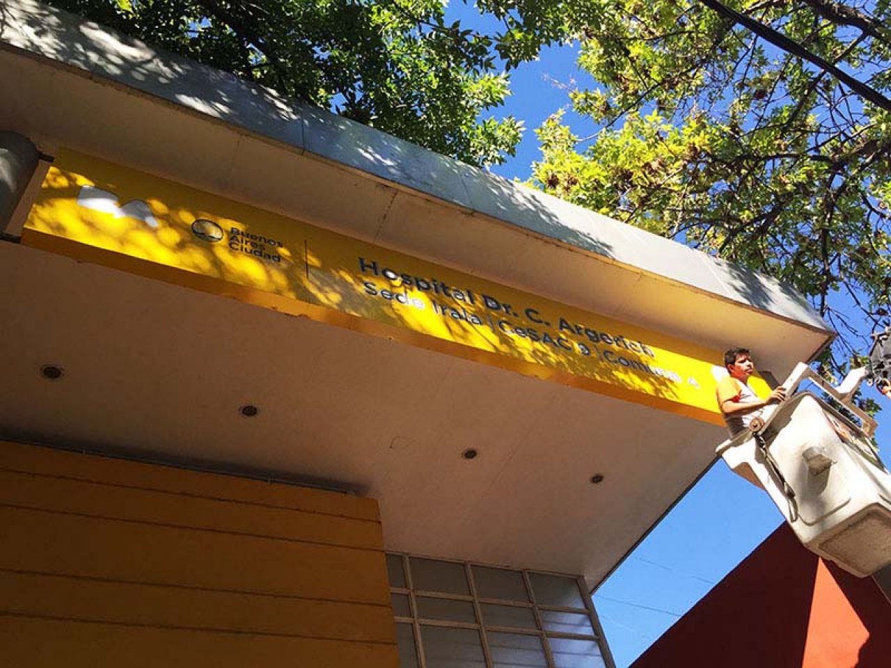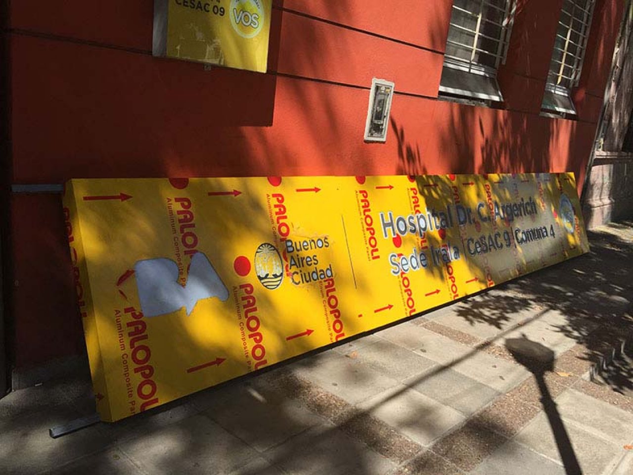 Remodelacion y cambio de imagen de los CESAC del Gobierno de la ciudad de Buenos Aires. Maruqesinas en alucobon routeado y retroiluminado con montaje en altura, letras y logos corporeos, vitrinas, decoracion grafica y de señaletica en vinilo.
