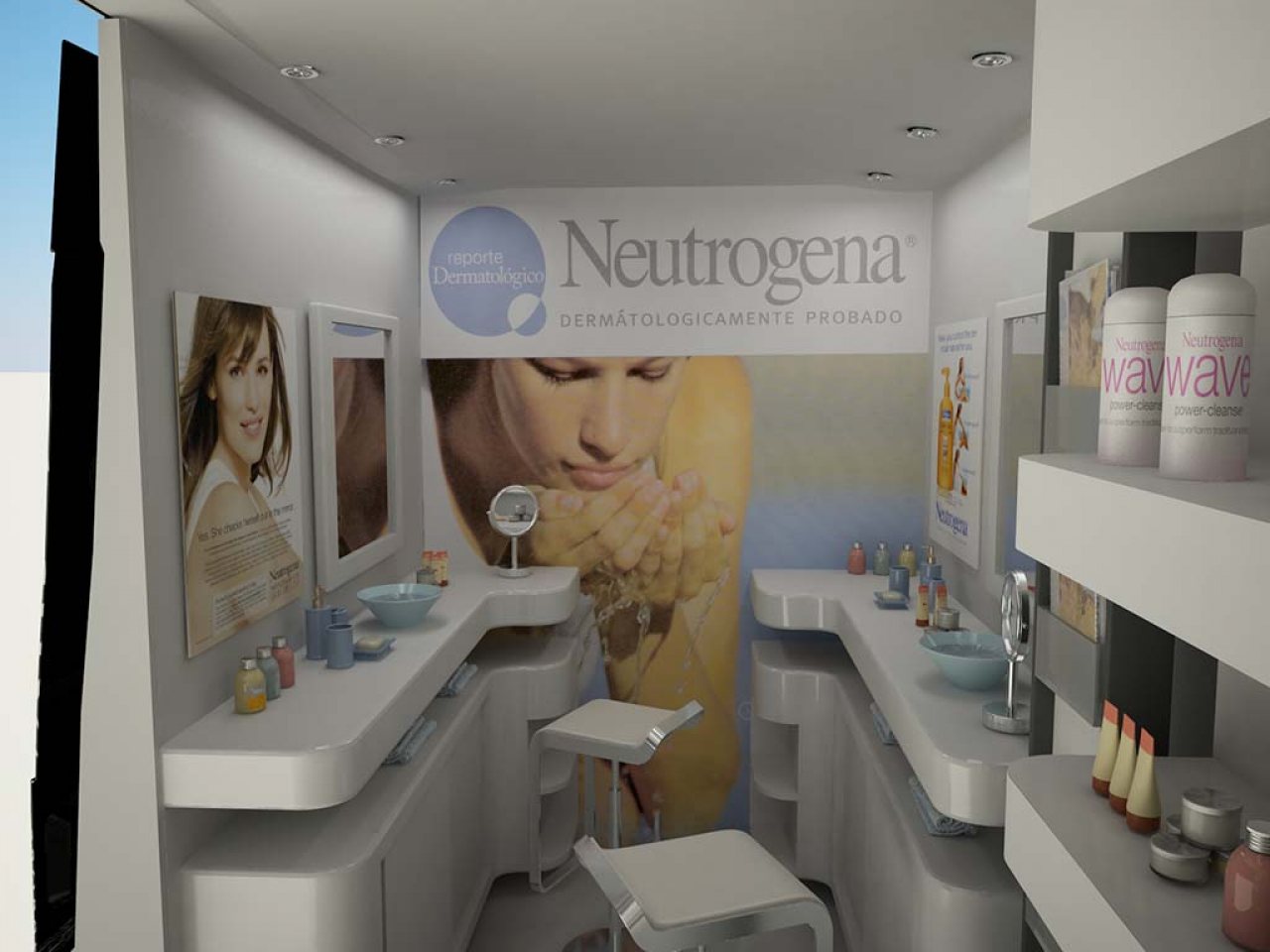 Beauty movil NEUTROGENA es una accion desarrollada en hipermercados, donde una Renault Master equipada con un set de belleza en su interior y exhibicion de productos, llegaba al hipermercado y se atiende al interezado en prueba de productos Neutrogena a cargo de una dermatologa gratuitamente. La van esta equipada con pantallas de LCD, iluminacion, grafica que se desarma y se arma en la parte trasera.