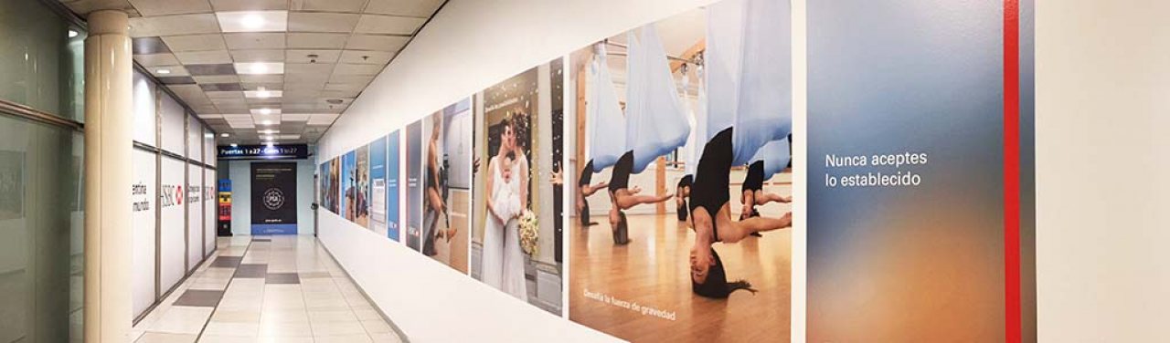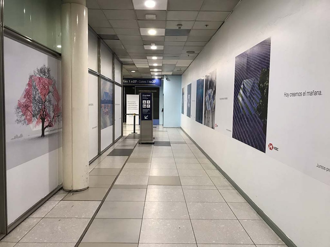 branding HSBC BANK pasillo pre embarque terminal A aeropuerto de Ezeiza