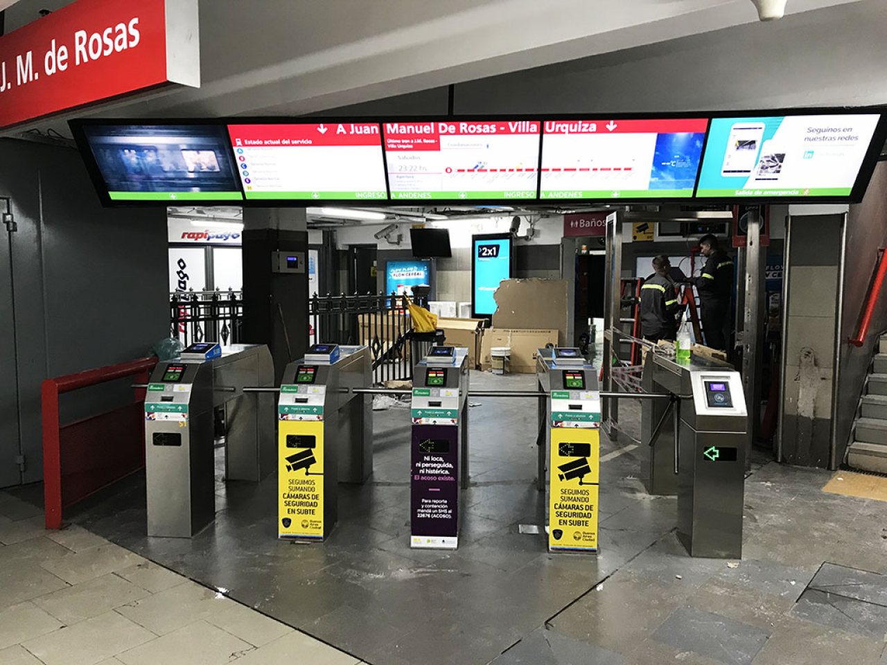 Diseño y Fabricacion de Case 5 x 1 horizontal con pantallas Samsung de 43" para comunicacion y señaletica en la estacion ALEM del Subte de Bs As